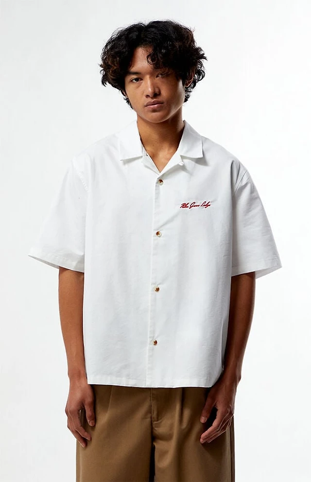 Lucky Brand Embroidered Camp Shirt Graphic T Shirt Five Pocket Shorts