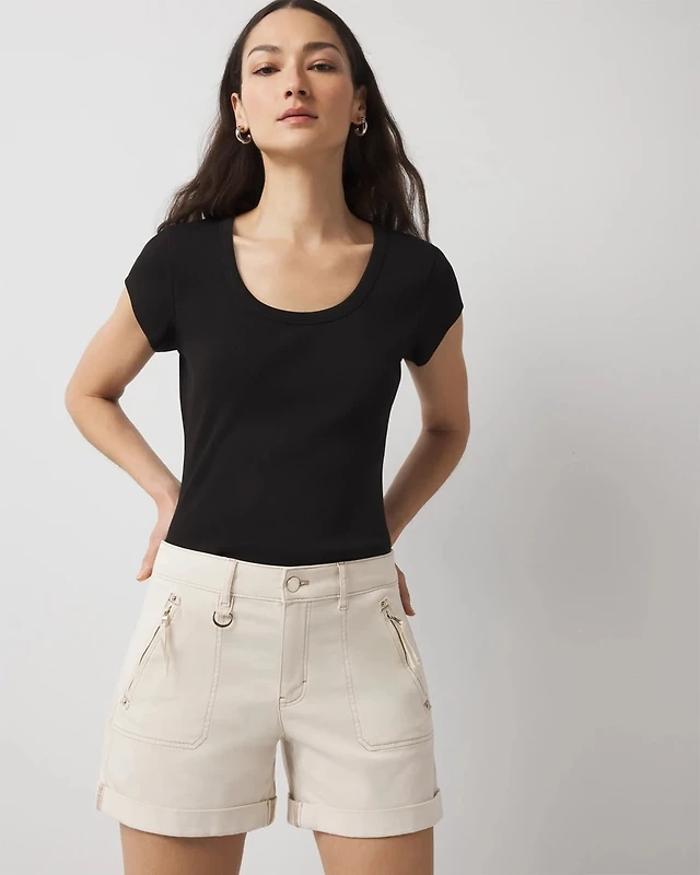 WHBMFORME™ Ribbed Stretch Scoop Neck Tee