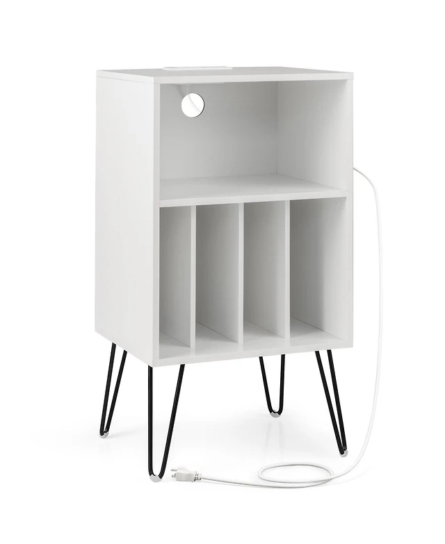 Gouun Record Player Stand with Charging Station for Living Room Bedroom