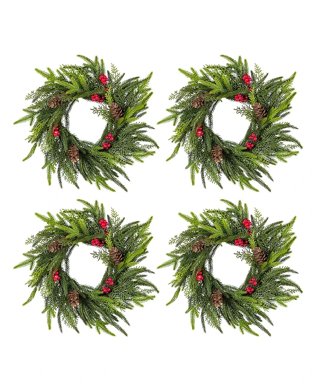 Glitzhome Christmas Mini Dripping Wreaths with Pinecones and Red Berries, Set of 4