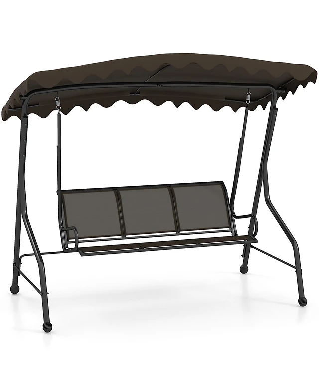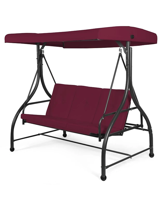Gouun 3-Seat Outdoor Patio Canopy Swing with Cushioned Steel Frame