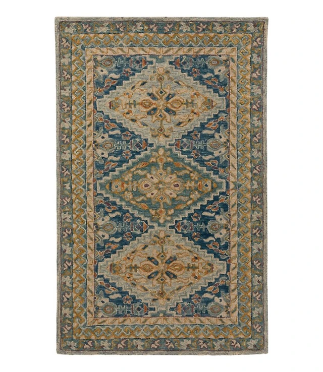 Bordered Medallion Wool Tufted Rug, Blue Multi