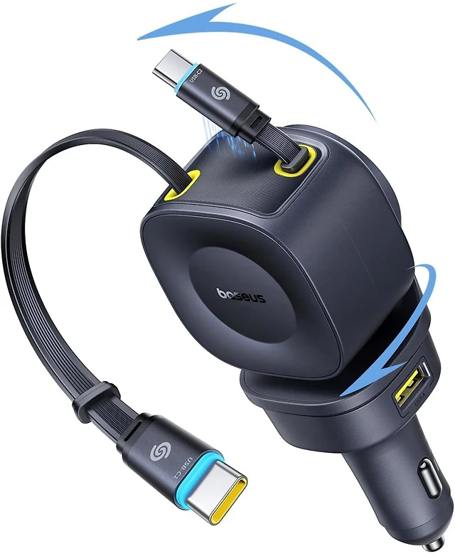 Baseus 163W Retractable Car Charger Usb C Fast Charging, PrimeTrip VR2 Max 4 in 1 Car Charger with Dual Usb C Cable