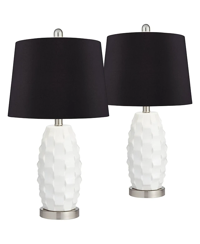 Possini Euro Design Kingston Modern Mid Century Table Lamps 32 3/4" Tall Set of 2 White Textured Ceramic Taupe Drum Shade for Bedroom Living Room