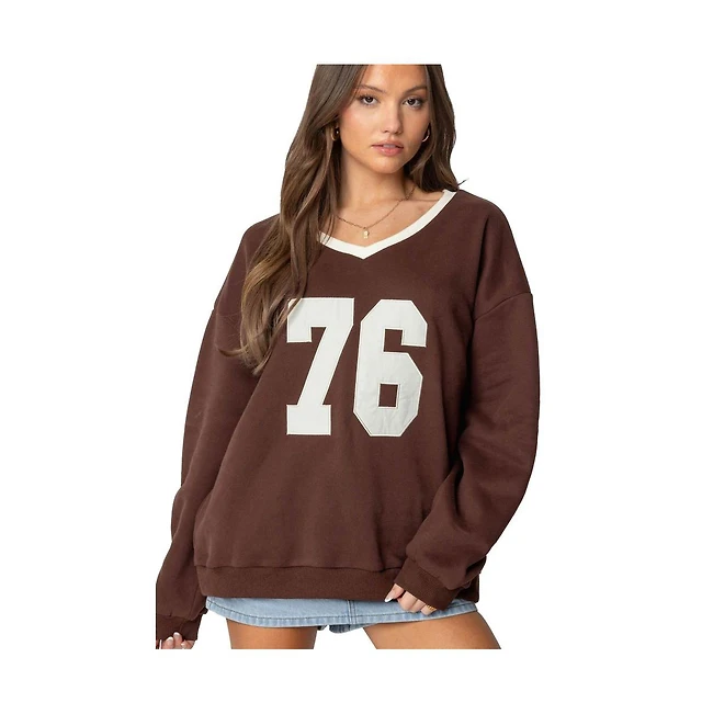 Belldini Women's V-Neck Rhinestone-Bow Sweater