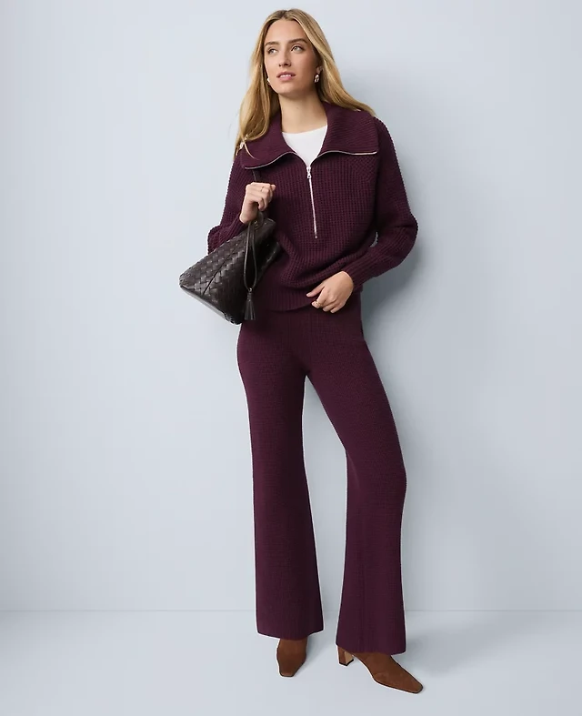 Ann Taylor Petite Weekend Collection Waffle Sweater Pant Poised Plum Women's