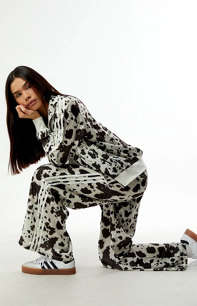 adidas Cow Print Wide Leg Satin Track Pants