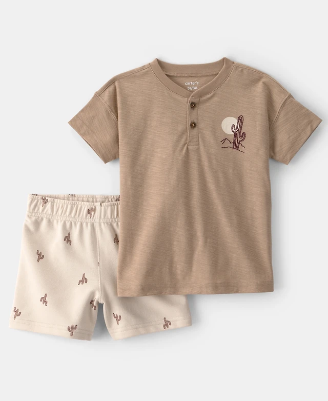 Carter's Boys' Toddler 2T-5T Desert Cactus Henley Top and Shorts, 2-Piece Set