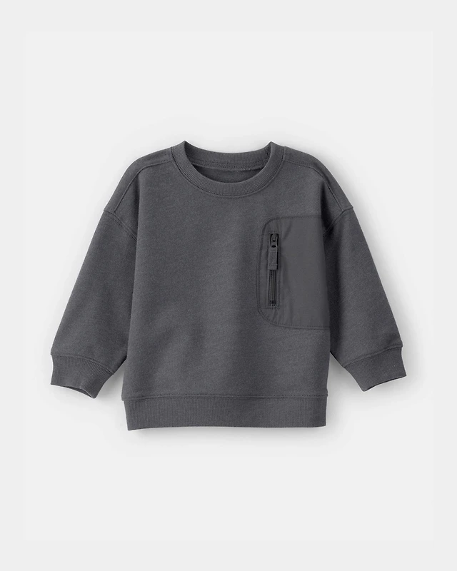 Baby Boy French Terry Zipper Pullover Sweatshirt - Grey