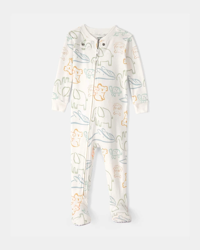 Baby Elephant 100% Cotton Snug Fit 1-Piece Pajama Set - Ivory