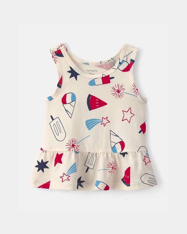 Baby Girl Fourth Of July Popsicle Peplum Tank Top - Cream