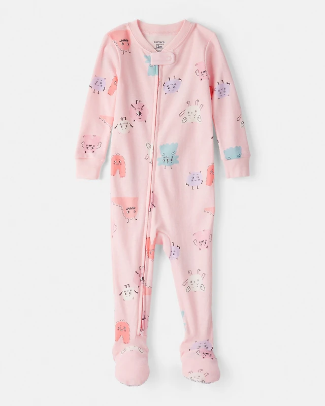 Toddler Girl Monster 100% Cotton Snug Fit Footie 1-Piece Pajamas - Pink