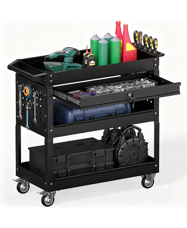 Mecale 2-in-1 Kids Rolling Cart with Play Tools Set for Construction & Role Play