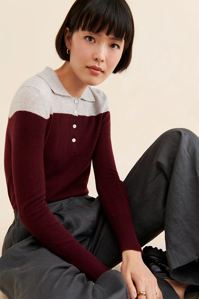 Pure Cashmere Two Toned Polo Cashmere Sweater