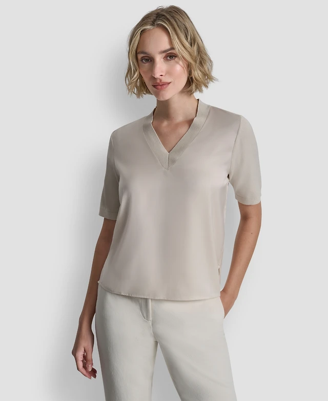 Ann Taylor Animal Print Tie V-Neck Popover Top Pale Sandalwood Women's