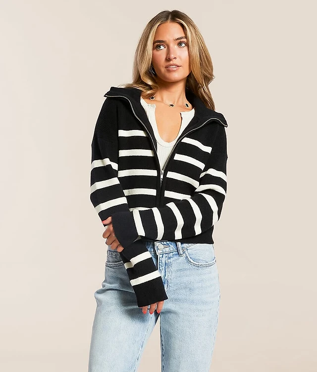 Prep Edit - Striped Quarter Zip Sweater