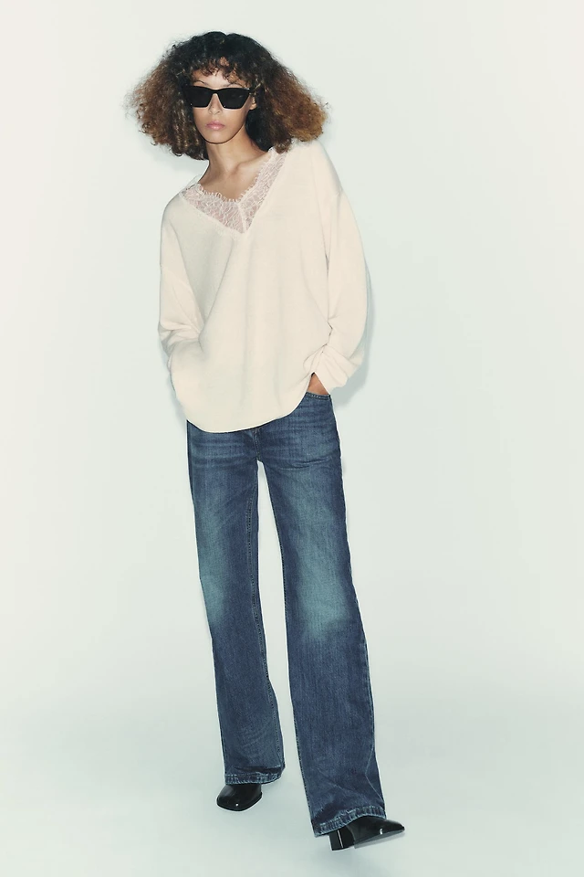 Pointelle Flare Sleeve Sweater