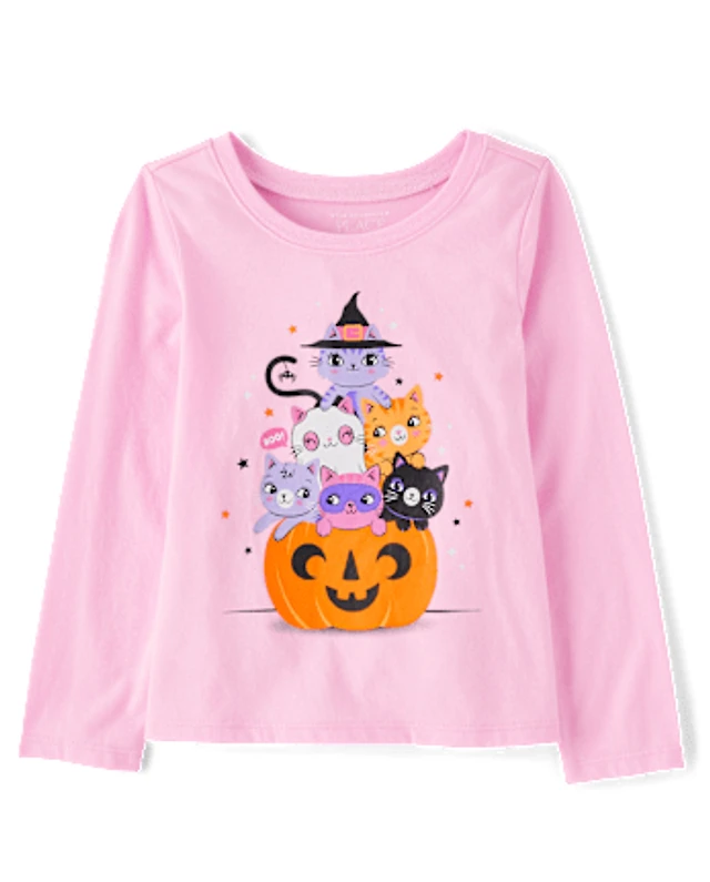 Baby And Toddler Girls Pumpkin Cats Graphic Tee