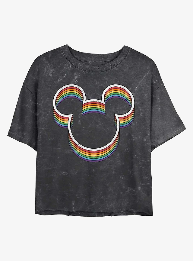 Disney Mickey Mouse Rainbow Ears Mineral Wash Crop Girls T-Shirt