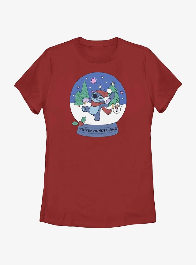 Disney Lilo & Stitch Winter Wonderland Snowglobe Womens T-Shirt