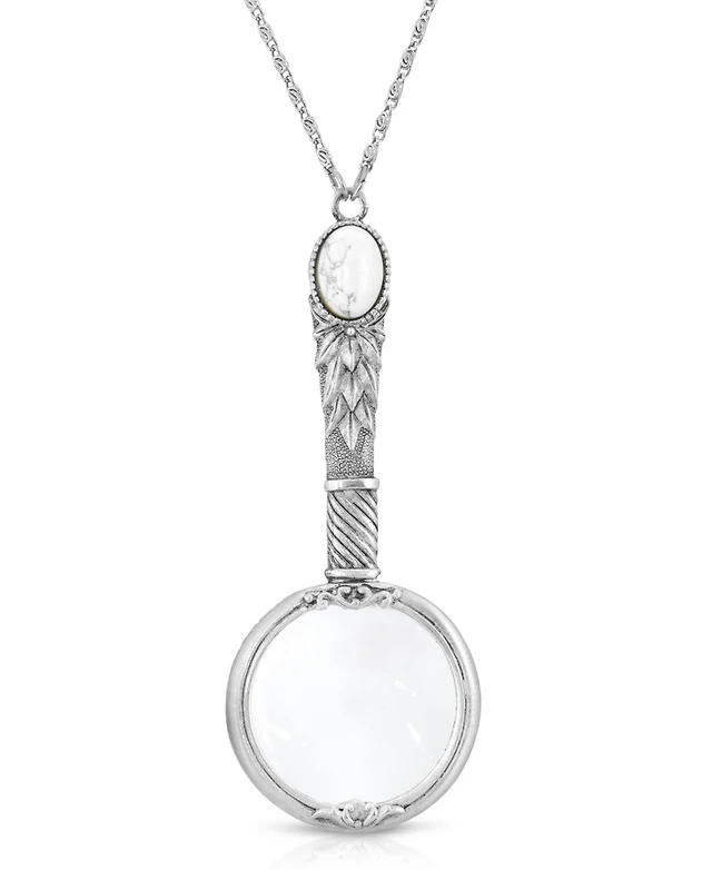 2028 Gold Tone White Howlite Semi Precious Magnifier 30" Pendant