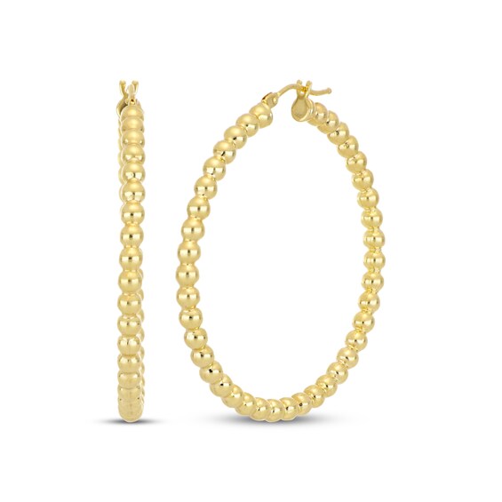 Beaded Hoop Earrings 10K Yellow Gold 30mm
