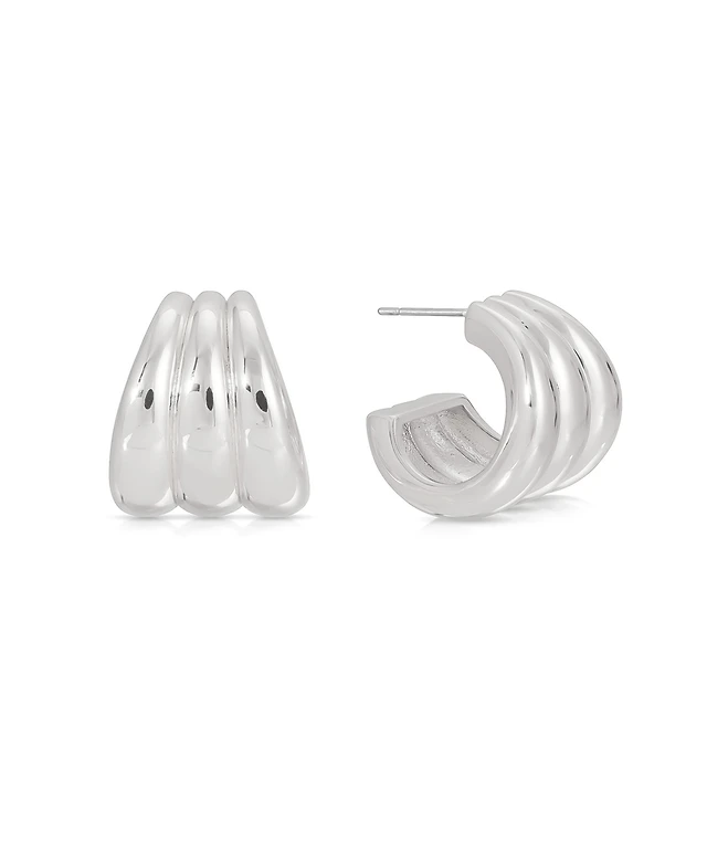 Adornia Silver Puff Hoop Earrings