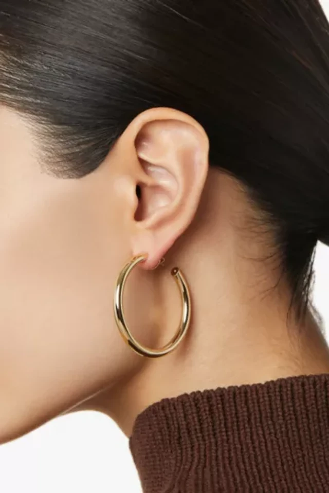 Polished Oval Tube Hoop Earrings in 10k Gold, 1 inch