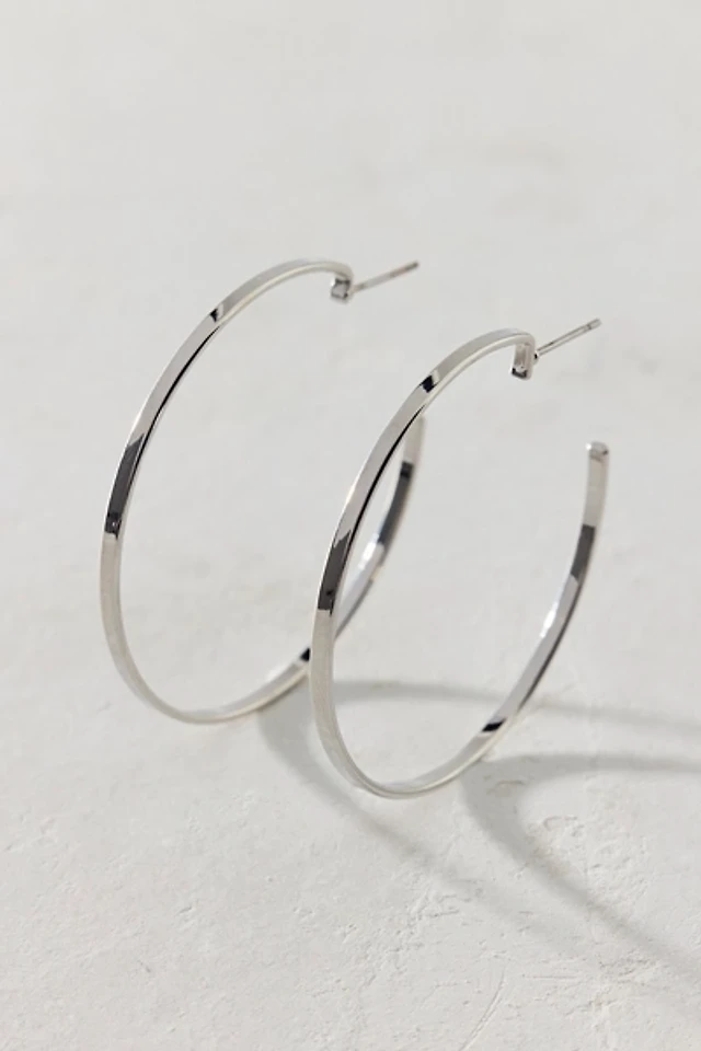 Crystal Polished Narrow Medium Hoop Earrings in 10k Gold, 1.2"