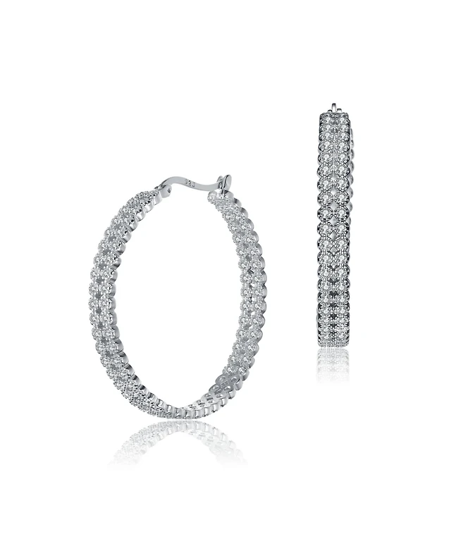 Macy's Diamond Accent Fascination Inside Glitter Hoop Earrings in 10k White Gold or Yellow Gold