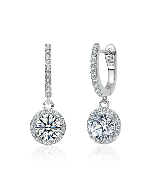 Clear Cubic Zirconia Halo Drop U-Hoop Earrings