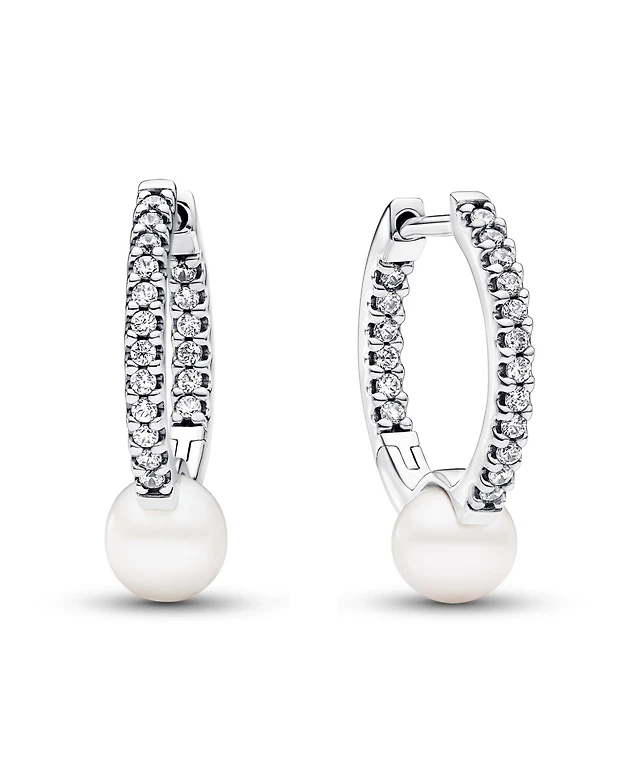 Pandora Treated Freshwater Cultured Pearl Pave Hoop Earrings