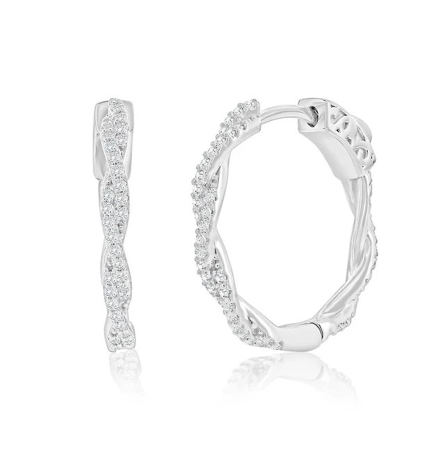Diamond Swirl Hoop Earrings (1/10 ct. t.w.) in Sterling Silver