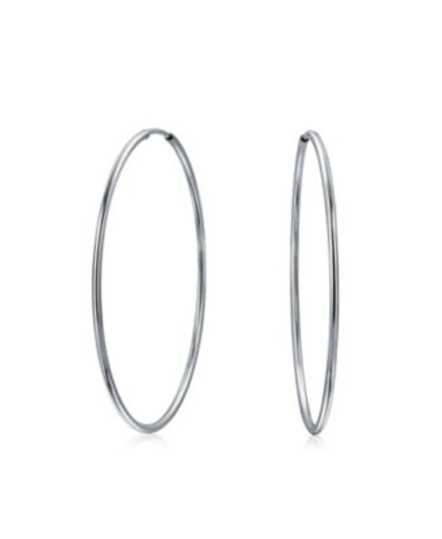 Bling Jewelry Thin Minimalist Hoop Huggie Earrings Sterling Silver Various Sizes