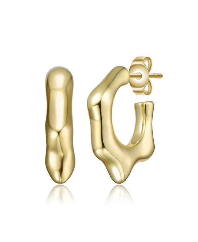 Wide Polished Small Hoop Earrings 14k Gold-Plated Sterling Silver, 20mm