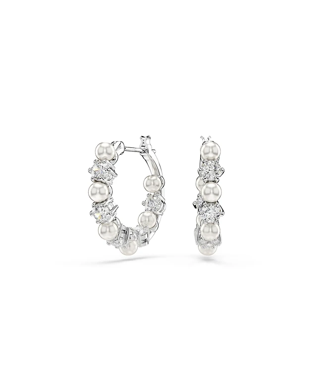 Sublima hoop earrings, White, Rhodium plated by SWAROVSKI