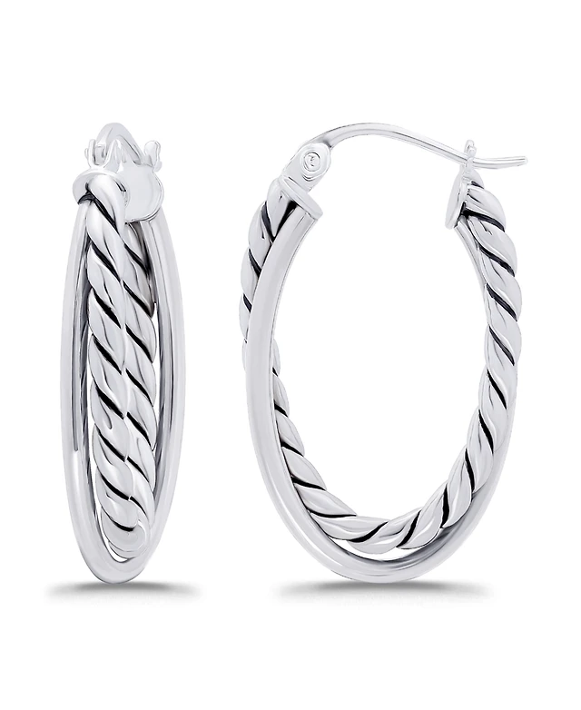 American West Jewelry Sterling Silver Elongated Oval Rope Textured Hoop Earrings