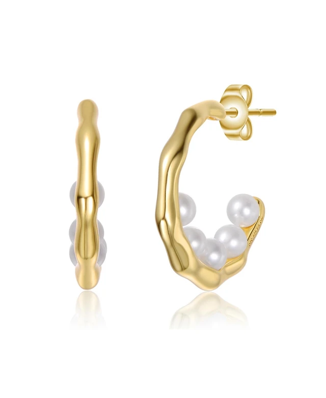 brook & york Chatham Gold Plated Clover Cultivated Pearl Charm Hoop Earrings