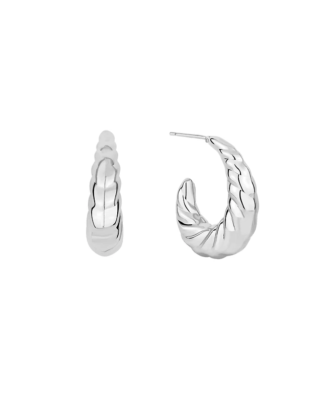 Rachel Glauber White Gold Plated Cubic Zirconia Twisted C-Hoop Earrings