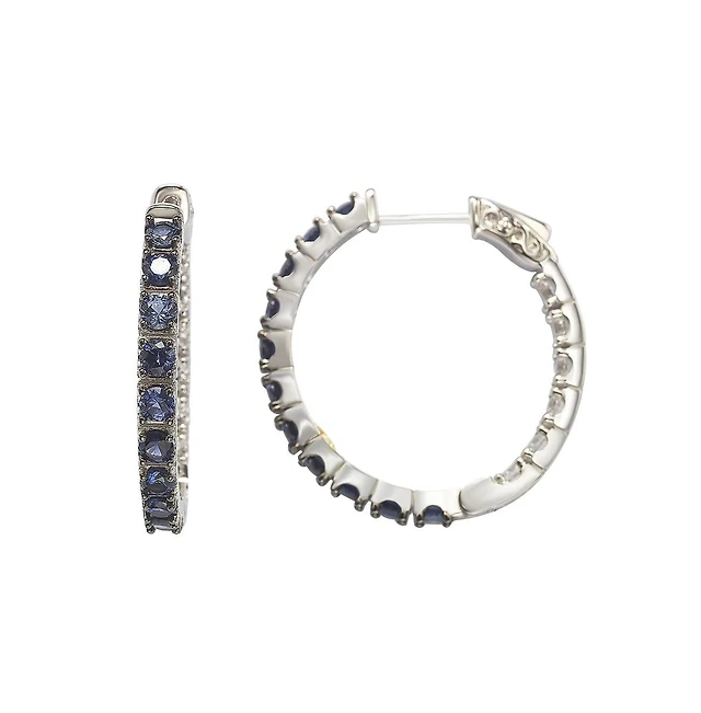 Matrix hoop earrings, Mixed cuts, Blue, Rhodium plated by SWAROVSKI