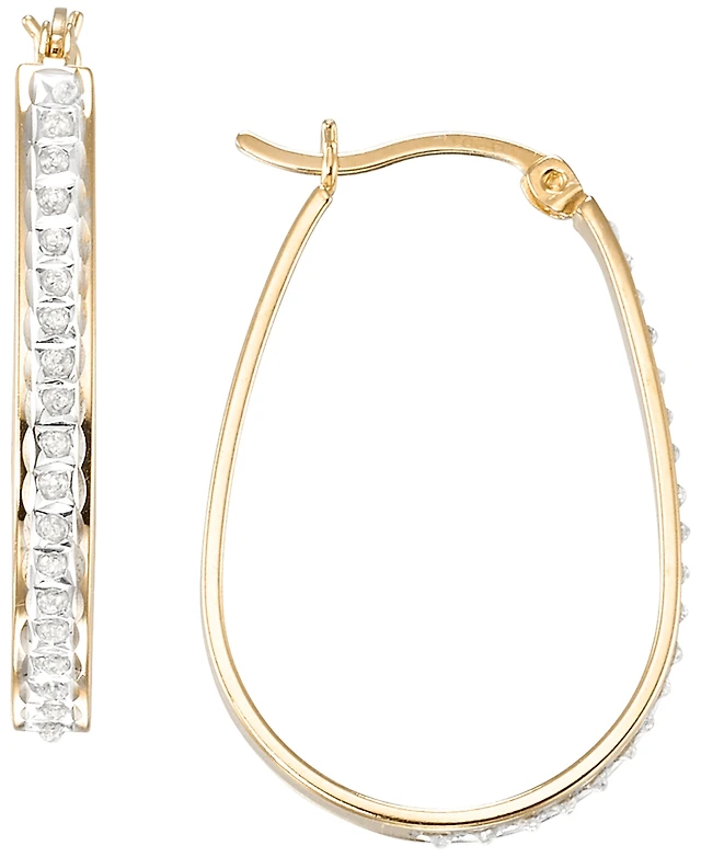 Diamond Oval Hoop Earrings (1/10 ct. t.w.) In Sterling Silver