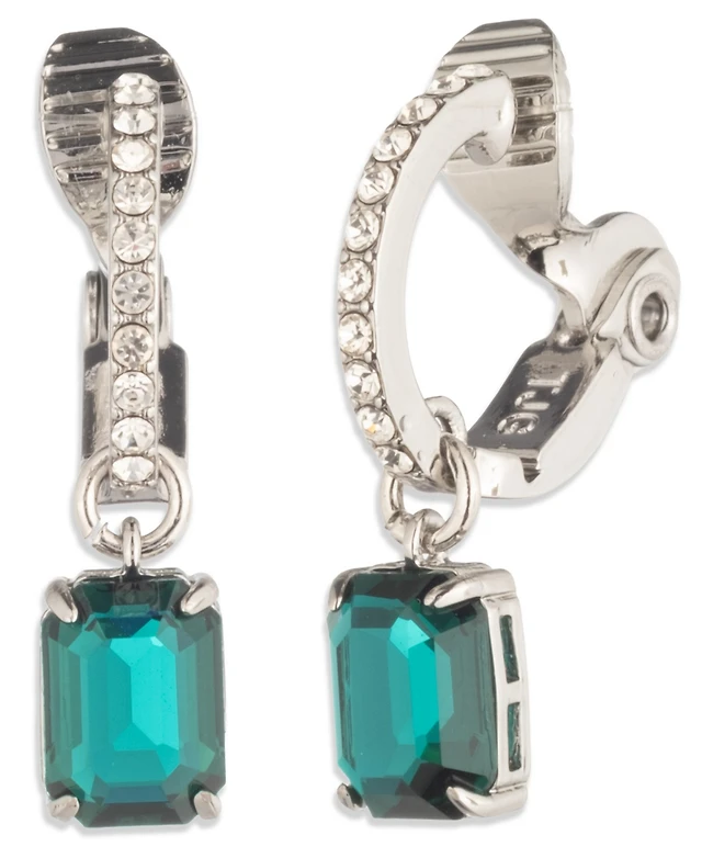 Vince Camuto Silver-Tone Rectangular Glass Stone Dangle Huggie Hoop Earrings