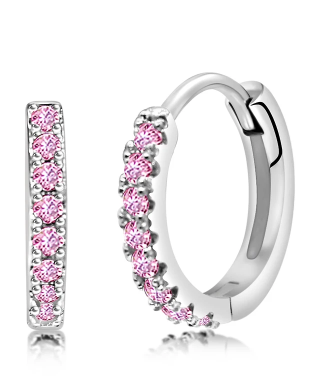 Cubic Zirconia Baguette Hoop Earrings Sterling Silver or 14k Gold-Plated