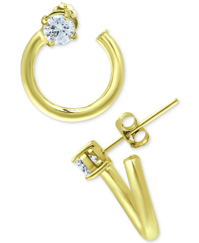 and Now This Clear Crystal Hoop Cubic Zirconia Stud Earrings Set