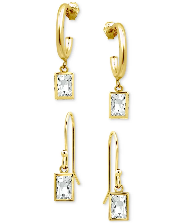 Macy's 2-Pc. Lab-Grown White Sapphire Hoop & Stud (3-8/4 ct. t.w.) Earring Set in Sterling Silver