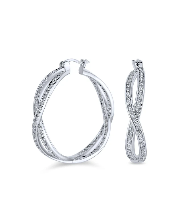 Bling Jewelry Black Pave Cz Cubic Zirconia Micro Pave 2 Row Huggie Hoop Earrings Cubic Zirconia Ip Black Sterling Silver .30 Diameter