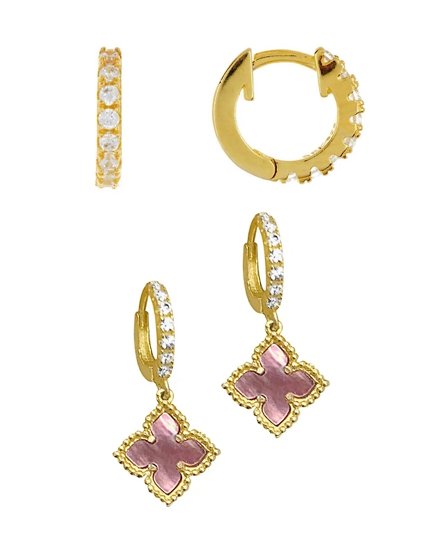 Adornia Gold Plated Cubic Zirconia Huggie and Clover Stud Set