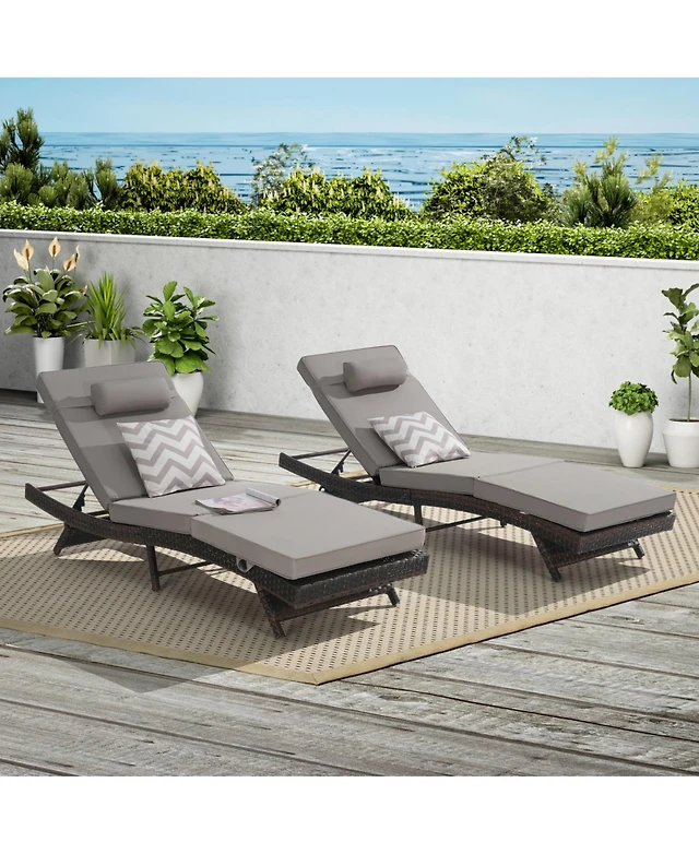 Costway 2PCS Patio Rattan Lounge Chair Chaise Recliner Back Adjustable Cushioned Garden