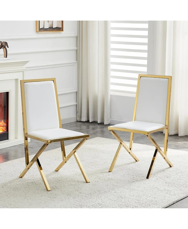 Streamdale Furniture Set of Retro Alligator Upholstered Dining Chairs with Crystal Buckle & Gold Legs