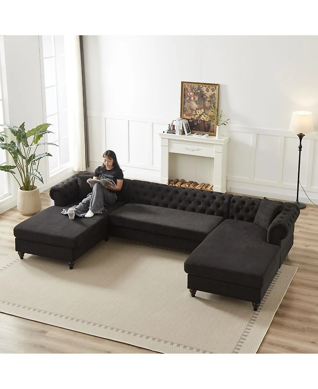 Modern Large U-Shape Sectional Sofa, 2 Large Chaise with Removable Ottomans for Living Room